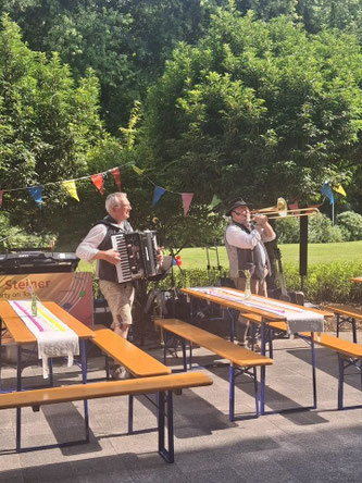 Nach einer kleinen Begrüßungsrede luden die Alleinunterhalter ,,Die Steiner“ den gesamten Nachmittag über zum Mitsingen und Mittanzen ein. 🎸🎤🎼
